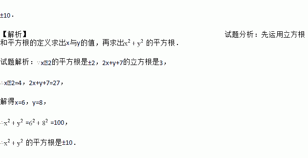 已知x﹣2的平方根是±2,2x+y+7的立方根是3,求的平方根.