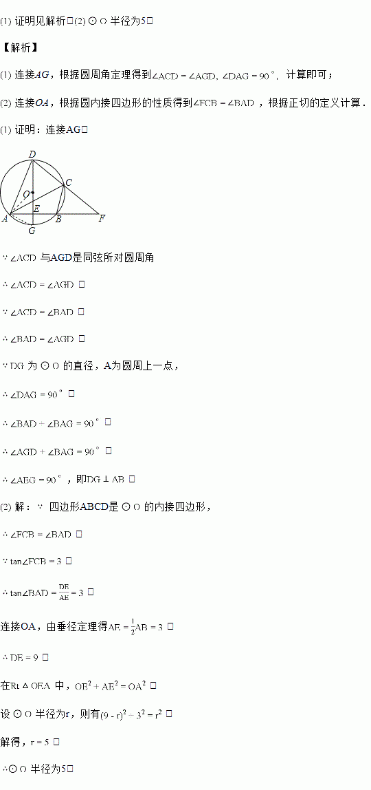 已知:如图,四边形ABCD是的内接四边形,直径DG交边AB于点E,AB、DC的延长线相交于点连接AC,若.