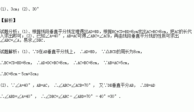 如图,△ABC中,AB=AC=5,AB的垂直平分线DE交AB、AC于E、D.