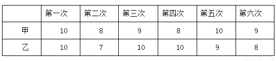 市射击队为从甲、乙两名运动员中选拔一人参加省比赛,对他们进行了六次测试,测试成绩如下表(单位:环):