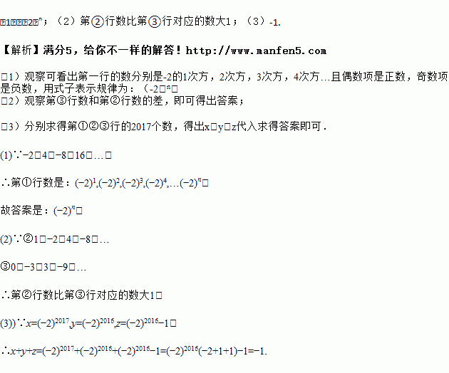 (3)设x、y、z分别表示第①②③行数的第2017个数字,求x+y+z的值.