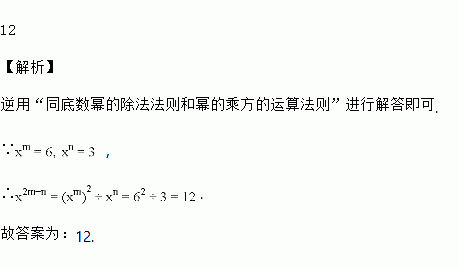 已知xm=6,xn=3,则x2m﹣n的值为_____.