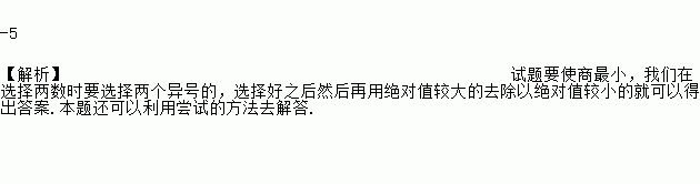 在-1,2,-3,5这四个数中,任意取两个数相除,其中最小的商是________.