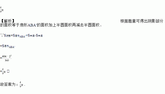 如图,AB为半圆的直径,且AB=2,半圆绕点B顺时针旋转40°,点A旋转到A′的位置,则图中阴影部分的面积为_____(结果保留).