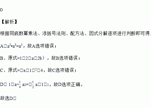 A. a6=a2•a3 B. 1﹣2a+4b=1﹣2(a+2b)