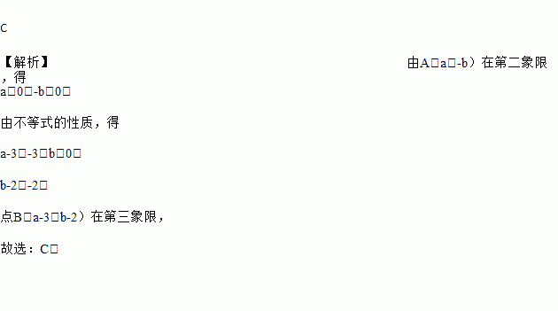 已知点A(a,﹣b)在第二象限,则点B(a﹣3,b﹣2)在( )