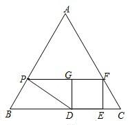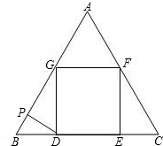 已知△ABC为等边三角形,AB=6,P是AB上的一个动点(与A、B不重合),过点P作AB的垂线与BC相交于点D,以点D为正方形的一个顶点,在△ABC内作正方形DEFG,其中D、E在BC上,F在AC上,