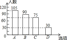 300×30%=90,即D类学生人数为90人,