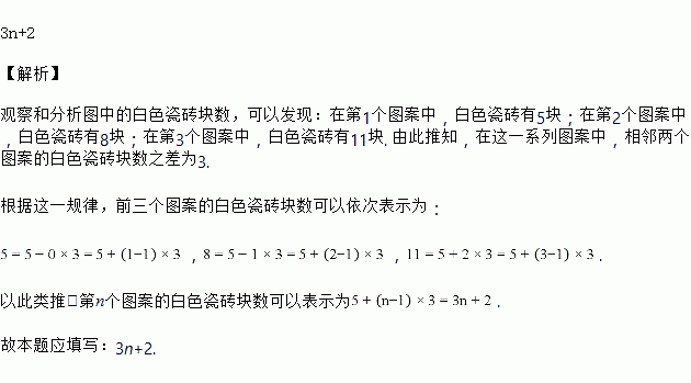 如图,用灰白两色正方形瓷砖铺设地面,第n个图案中白色瓷砖数为___________.