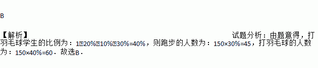 (2016四川省雅安市)某校为开展第二课堂,组织调查了本校150名学生各自最喜爱的一项体育活动,制成了如下扇形统计图,则在该被调查的学生中,跑步和打羽毛球的学生人数分别是( )