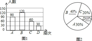(2)由D层次人数除以总人数求出D所占的百分比,再求出B所占的百分比,再乘以总人数可得B层次人数,用总人数乘以C层次所占的百分比可得C层次的人数不全图形即可;