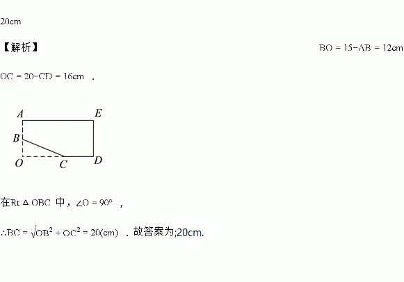 如图,小明将一张长为,宽为的长方形纸剪去了一角,量得,,则剪去的直角三角形的斜边长为______.
