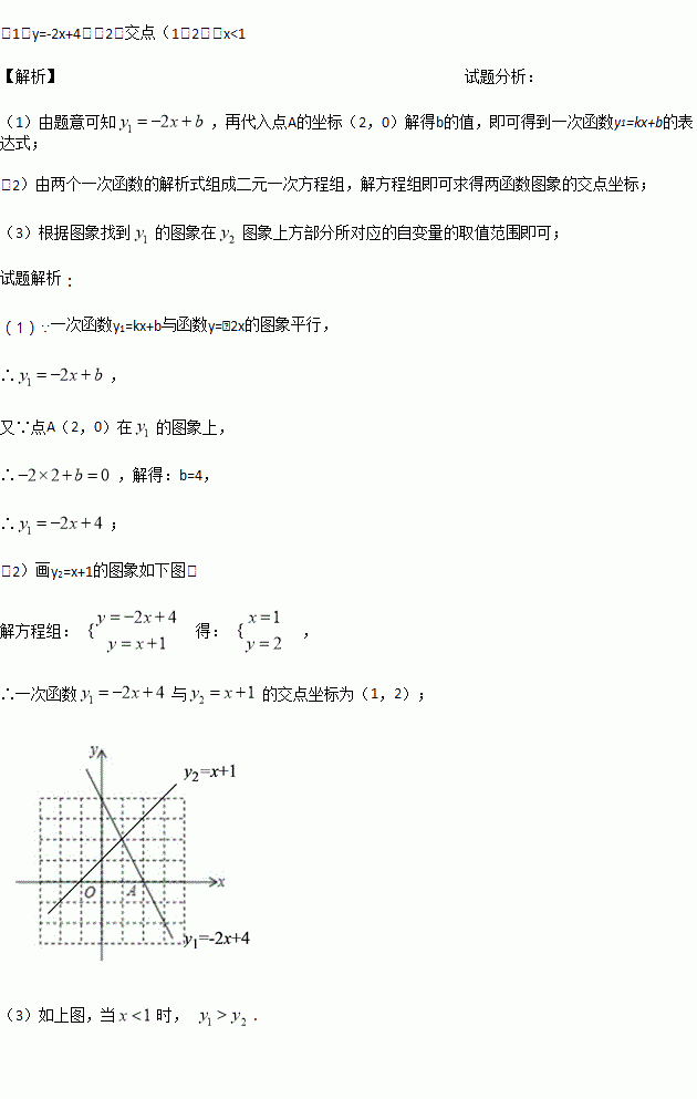 已知一次函数y1=kx+b与函数y=﹣2x的图象平行,且与x轴的交点A的横坐标为2.