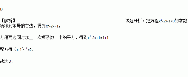 用配方法解方程x2-2x-1=0时,配方后得的方程为( )