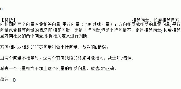 D. 减去一个向量相当于加上这个向量的相反向量.