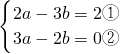 ②×2,得6a-4b=0 ④,