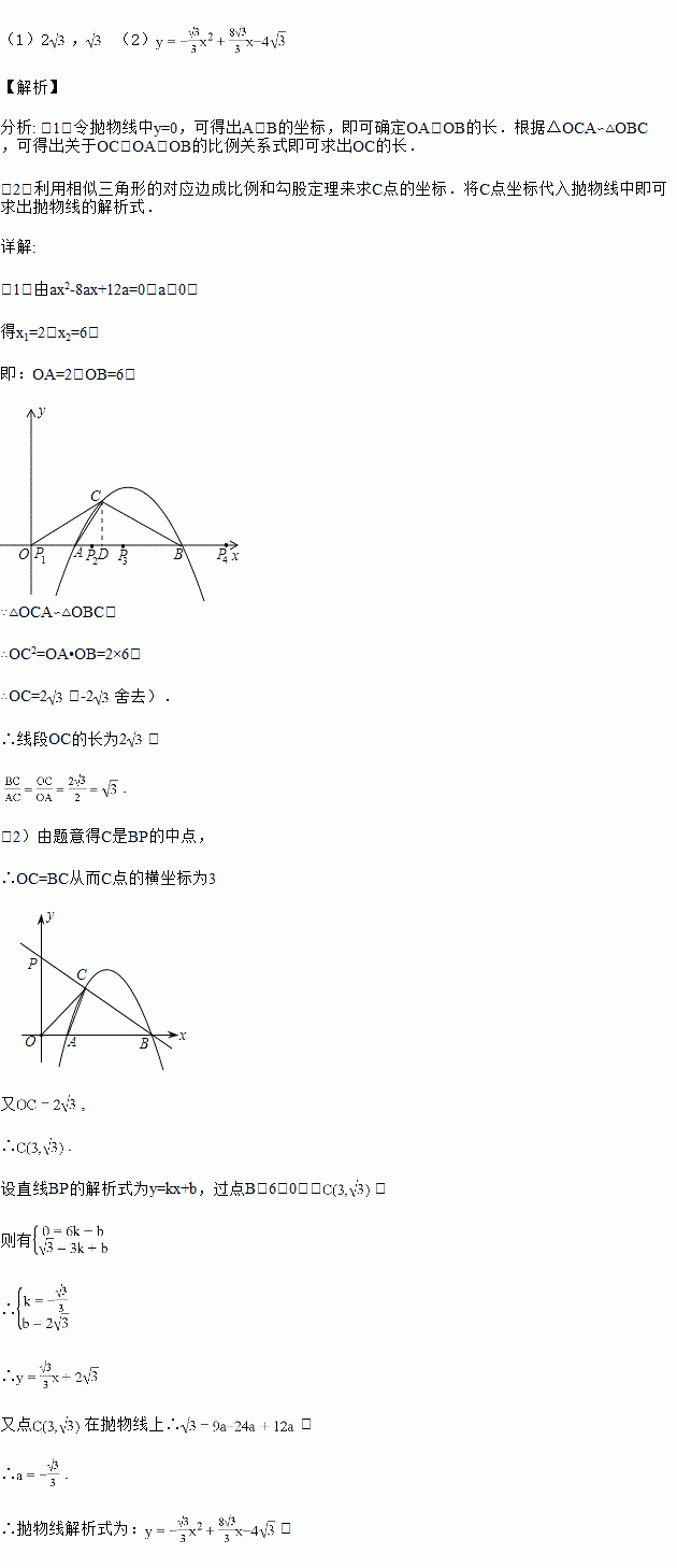 已知抛物线y=ax2﹣8ax+12a(a<0)与x轴交于A、B两点(点A在点B的左边),抛物线上另有一点C在第一象限,且使△OCA∽△OBC,