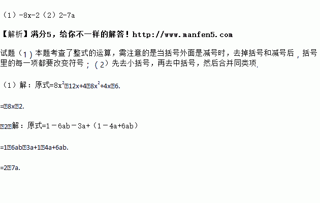 (2)1-3(2ab+a)+[1-2(2a-3ab)]