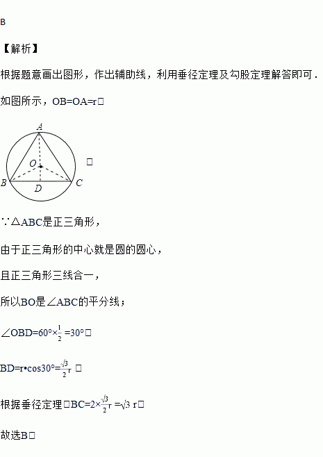 半径为r的圆的内接正三角形的边长是( )