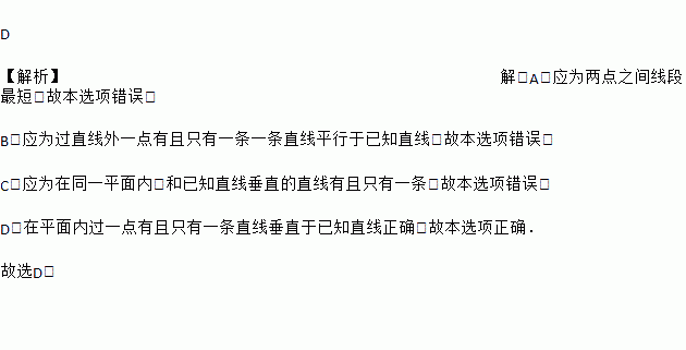 D. 在平面内过一点有且只有一条直线垂直于已知直线.