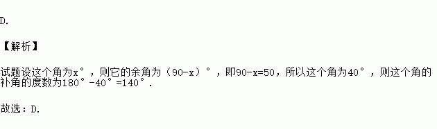 如果一个角的余角是50°,那么这个角的补角的度数是( ).
