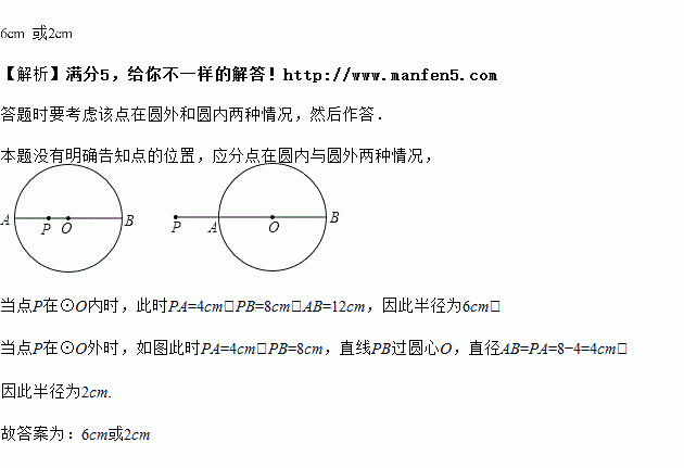 一个点到一个圆的最短距离为,最长距离为,则这个圆的半径为________.