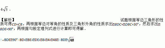 如图,△ABC和△DCE都是边长为4的等边三角形,点B,C,E在同一条直线上,连接BD,求BD的长.