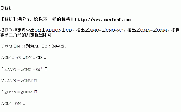 如图,、是的弦,点,分别为,的中点,且.求证:.