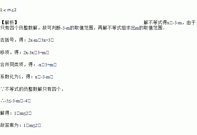 已知不等式 2x﹣m<3(x+1)的负整数解只有四个,则 m 的取值范围是_____.