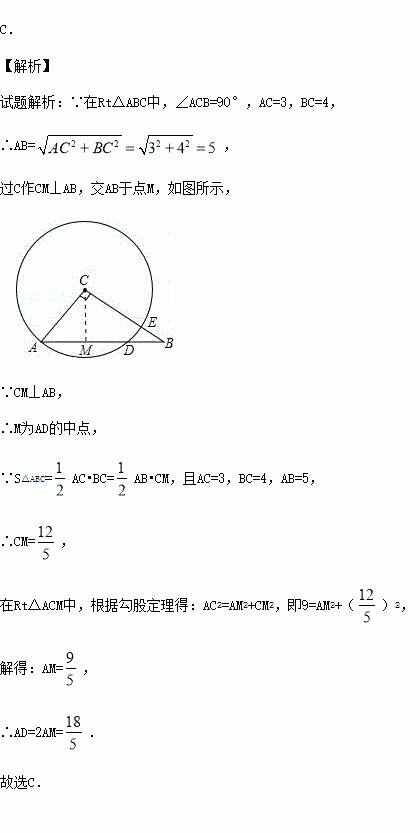 如图,在Rt△ABC中,∠ACB=90°,AC=3,BC=4,以点C为圆心,CA为半径的圆与AB交于点D,则AD的长为( )
