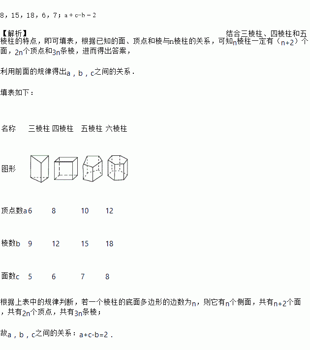 名称 | 三棱柱 | 四棱柱 | 五棱柱 | 六棱柱 |