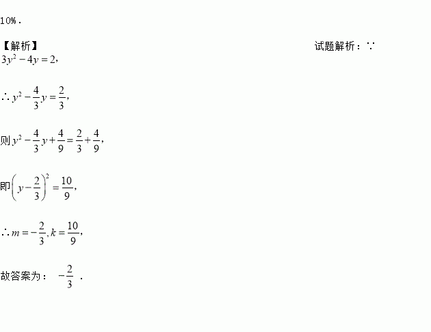 若方程3y2﹣4y﹣2=0可化为(y+m)2=k的形式,则m= .