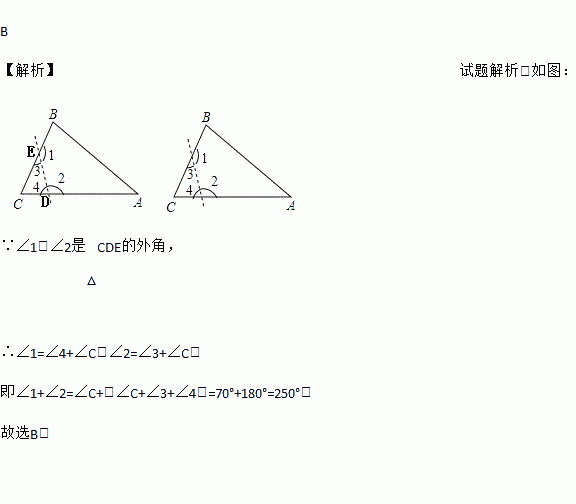 如图,△ABC中,∠C=70