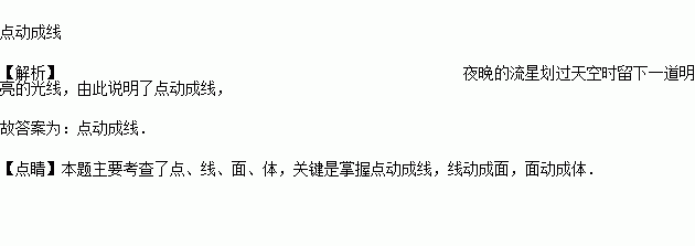 夜晚的流星划过天空时留下一道明亮的光线,由此说明了________的数学事实.