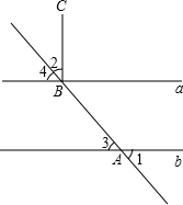 分析:先根据对顶角相等和两直线平行,同位角相等求出∠4,再根据垂直即可求出∠2的度数.
