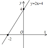 ∴当x=0时,y=4.当y=0时,x=-2.即直线y=2x+4经过点(0,4),(-2,0).其图象如图所示:
