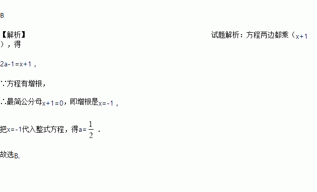若关于x的方程有增根,则a的值为( )