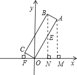 分析:AM⊥X轴于M,BN⊥X轴于N,CF⊥X轴于F,根据勾股定理求出AC、BO、OA,求出BE,AE,证△BAE∽△ONE得到比例式,求出ON,根据勾股定理求出BN即可.