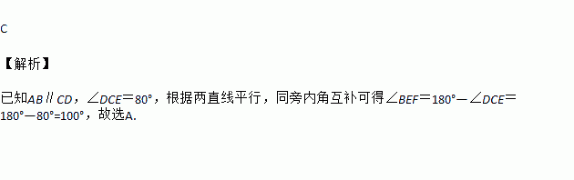 如图,AB∥CD,∠DCE=80°,则∠BEF=( )