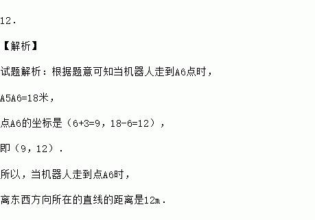 如图,一个机器人从点O出发,向正东方向走3m到达点A1,再向正北方向走6m到达点A2,再向正西方向走9m到达点A3,再向正南方向走12m到达点A4,再向正东方向走15m到达点A5.按如此规律下去,当机器人走到点A6时,离点O的距离是 m.