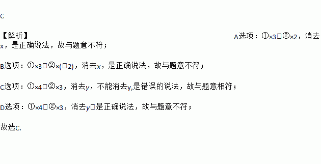 C. ①×4-②×3,消去y D. ①×4+②×3,消去y