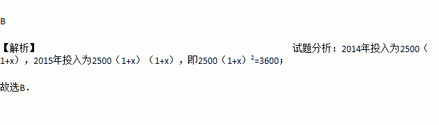 近年来某市加大了对教育经费的投入,2013年投入2500万元,2015年将投入3600万元,该市投入教育经费的年平均增长率为x,根据题意列方程,则下列方程正确的是( )