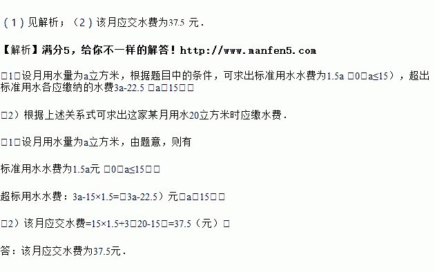 为节约用水,某市规定三口之家每月标准用水量为立方米,超过部分加价收费,假设不超过部分水费为元/立方米,超过部分水费为元/立方米.