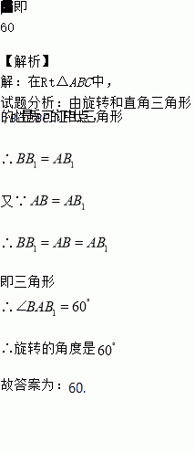 △AB1C1的位置,点B1恰好落在边BC的中点处.那么旋转的角度是______度.