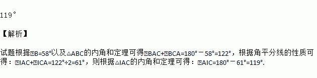 如图,在△ABC中,AI和CI分别平分∠BAC和∠BCA,如果∠B=58°,那么∠AIC=____________.