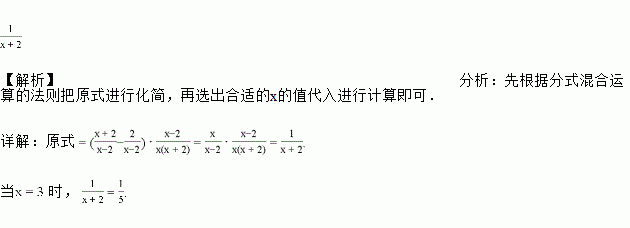 先化简,再求值:(-)÷ , 然后选取一个你喜欢的数代入求值.