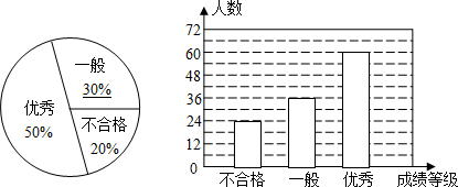 分析:(1)成绩一般的学生占的百分比=1-成绩优秀的百分比-成绩不合格的百分比,测试的学生总数=不合格的人数÷不合格人数的百分比,继而求出成绩优秀的人数.
