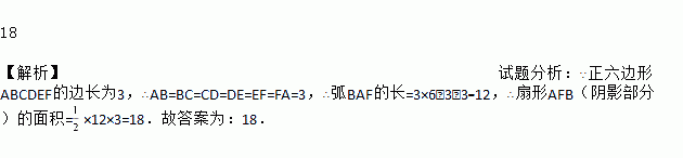 如图,将边长为3的正六边形铁丝框ABCDEF变形为以点A为圆心,AB为半径的扇形(忽略铁丝的粗细).则所得扇形AFB(阴影部分)的面积为_____.