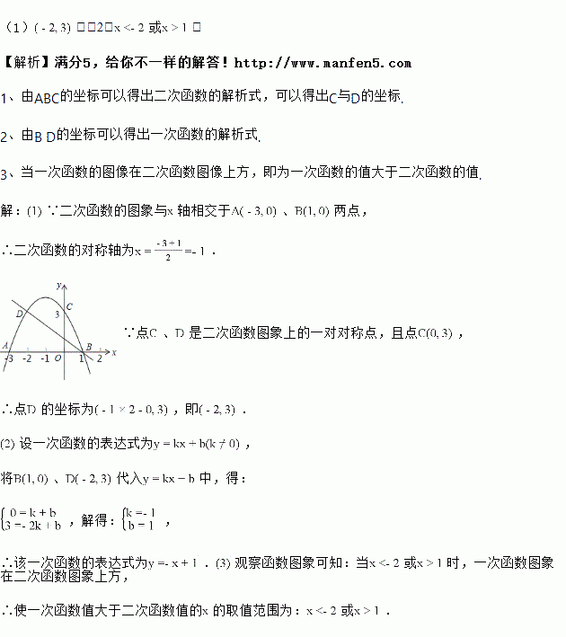 是二次函数图象上的一对对称点,一次函数的图象过点![]()