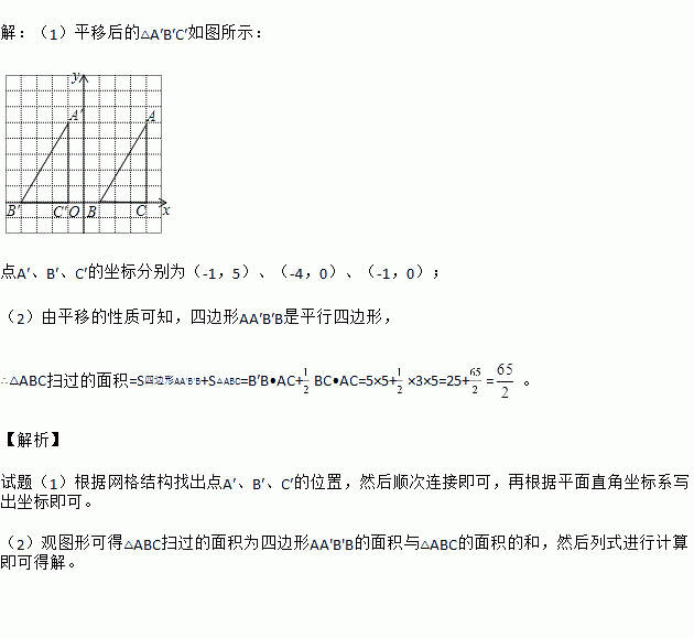 (2)求出在整个平移过程中,△ABC扫过的面积.
